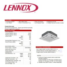 Conçue pour le confort silencieux et l’efficacité énergétique, la Lennox M22A s’intègre discrètement aux plafonds suspendus. Son panneau à flux d’air 360° assure une diffusion uniforme, tandis que des fonctions comme le redémarrage automatique, la pompe à condensats intégrée et le contrôle sans fil simplifient l’utilisation quotidienne. Avec 19,5 SEER, 13,0 EER et 10,0 HSPF, elle garantit un chauffage fiable jusqu’à –30 °C, pour un confort toute l’année.